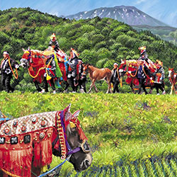 タイトル「フリータイム・デイズ」 お寺の境内に様々な仏像が集う日常をイメージして描きました。 たくさんの要素を組み合わせ、細かいところまで何度見ても飽きがこないように工夫しています。