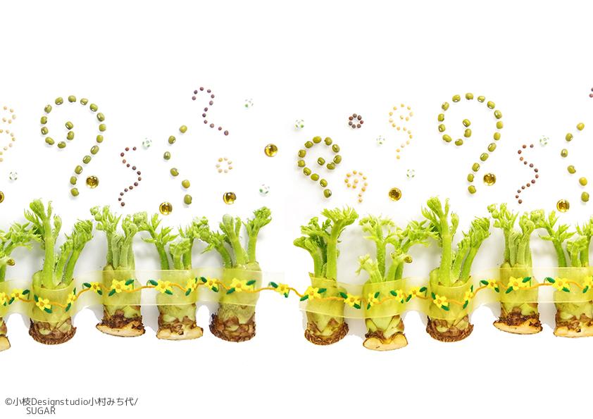 春の山菜”タラの芽”です。春の息吹をぷんぷん感じる息吹は様々なシードで表現しました。