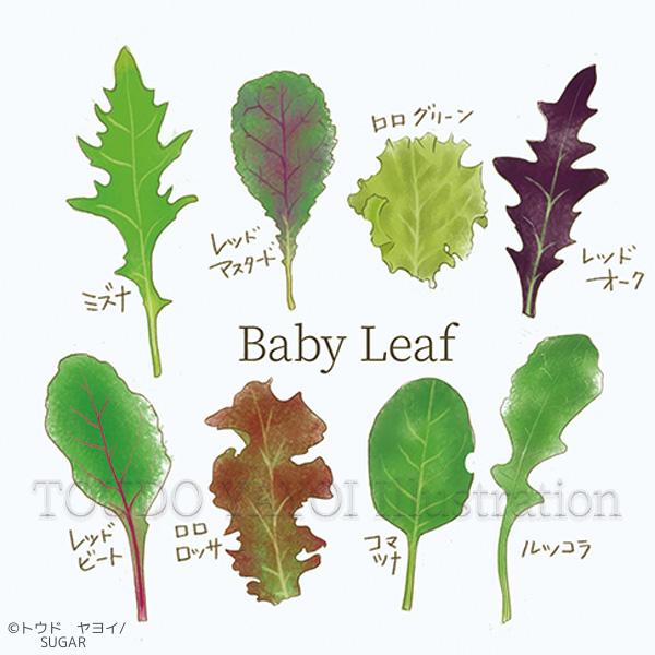 自主制作のベビーリーフ達です。 ベビーリーフにポテトチップスをくるとん代わりに乗せたサラダが好きです。 作画・・・・Photoshop