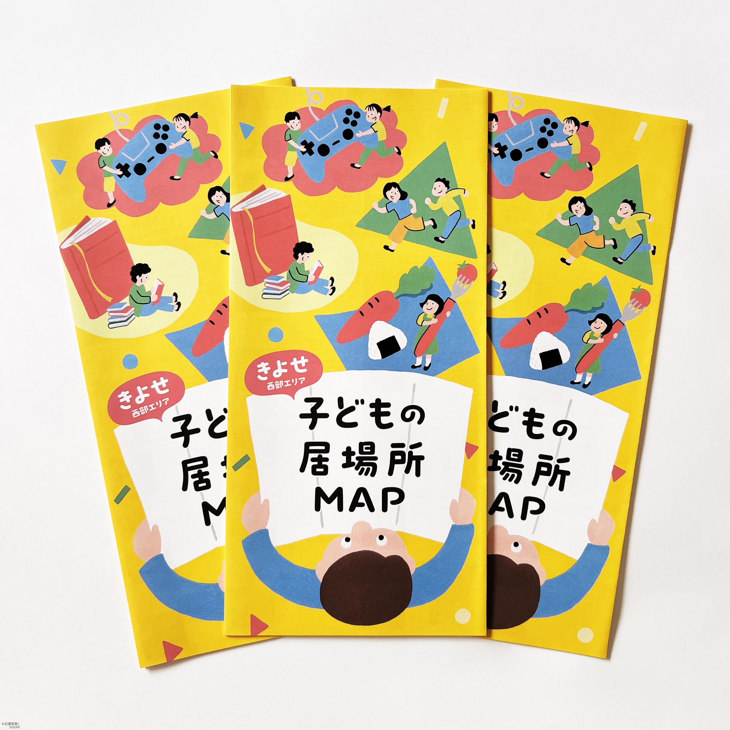 「きよせ西部エリア 子どもの居場所MAP」 リーフレットのデザインとイラストを担当させていただきました。 子どもたちそれぞれの居場所を いろんな図形で形づくりました。