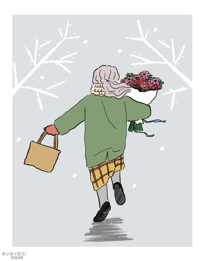 冬らしいファッションの女性を描きました。