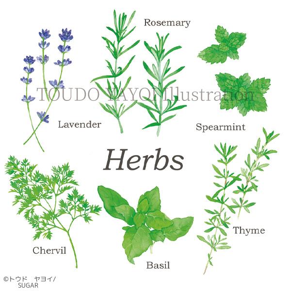 モックアップ製作用に作ったハーブのサンプルイラストです。 こちらのサンプルは多くの方にご覧頂いているようで よくお仕事を連れてきてくれる頼もしい営業担当でもあります。 作画・・・・サクラマット水彩 編集・・・・Photoshop