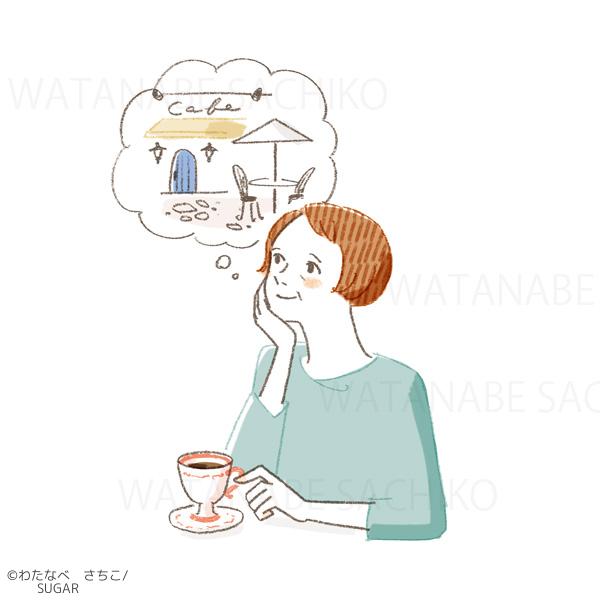 "Croissant calling..." パンや洋菓子×女の子の、ぱっと目を惹くイラスト。 淡い水彩タッチで童話のような淡い雰囲気に。
