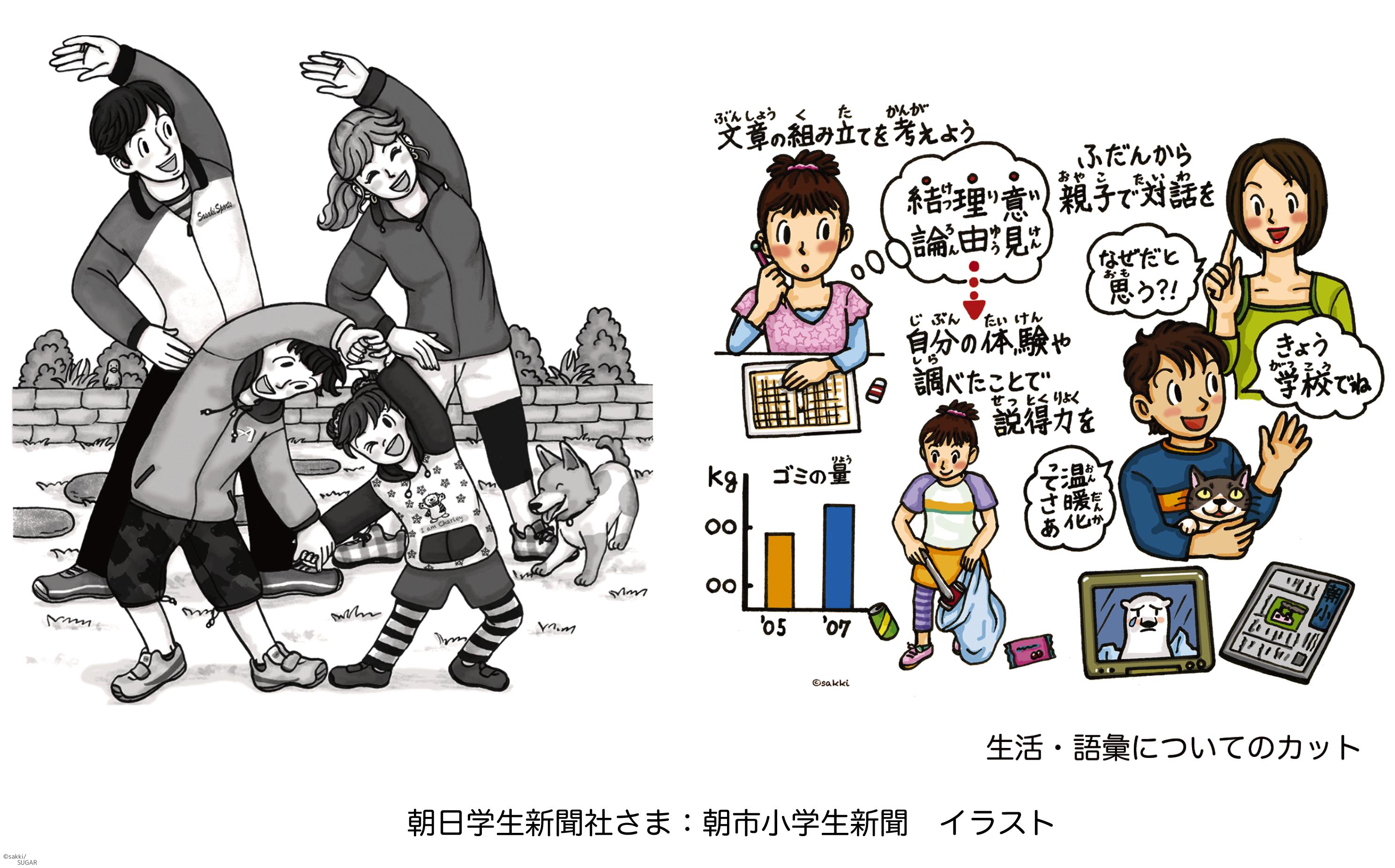 幼児~ジュニア向けのわかりやすいイラスト、動物や妖怪キャラクターが得意です。 児童書籍、教材、図鑑、医療健康系パンフレット、小中高生向け新聞、パズル誌、地域情報誌の挿絵や漫画、福祉施設キャラクターデザインなどの仕事実績豊富です。よろしくお願い致します。 ※適格請求書発行事業者登録 <主な仕事実績例> ・朝日学生新聞社さま「朝日小学生新聞」 小説「絵の中からSOS!/ 絵の中からまたSOS ! 魔女とかがみ ・ 赤羽じゅんこ 著」挿絵。 ・童夢さま 保育用カット集 ・ポプラ社さま「ふたりでうたえる!どうようカラオケえほん」挿絵 ・調布市社会福祉事業団なごみさま、なごみシンボルマーク ・学研さま「Piccolo」おたよりカット/ 壁面制作 ・コスミック出版社さま「でっかいまちがいさがし」まちがい探しイラスト ・実用之日本社さま「『もしも?』の図鑑 海底大冒険」イラスト ・東京書店さま「ムズムズ激むずまちがいさがし」間違い探しイラスト ・新学社さま(全家研さま)「小学ポピー1,2年生 わくわくえいご」英語教材イラスト ・東京書店さま「くらべる戦国武将図鑑」パート6くらべる信長軍団のイラスト ・池田書店さま「集中力・観察力UP 爆走!まちがいさがし大冒険」4章(うわさのアクアリウムへGO!)イラスト ・青春出版社さま 「子どもはできても大人はできない⁉︎まちがいさがし」イラスト ・ジャパンタイムズ出版さま「The Japan Times Alpha J」キャラクターイラスト ・メディアソフトさま「満点まちがい絵さがし」間違い探しイラスト ・英和出版さま「脳活まちがい絵さがし」間違い探しイラスト ・マガジン・マガジンさま「文字の大きなクロスワード」本文イラスト など