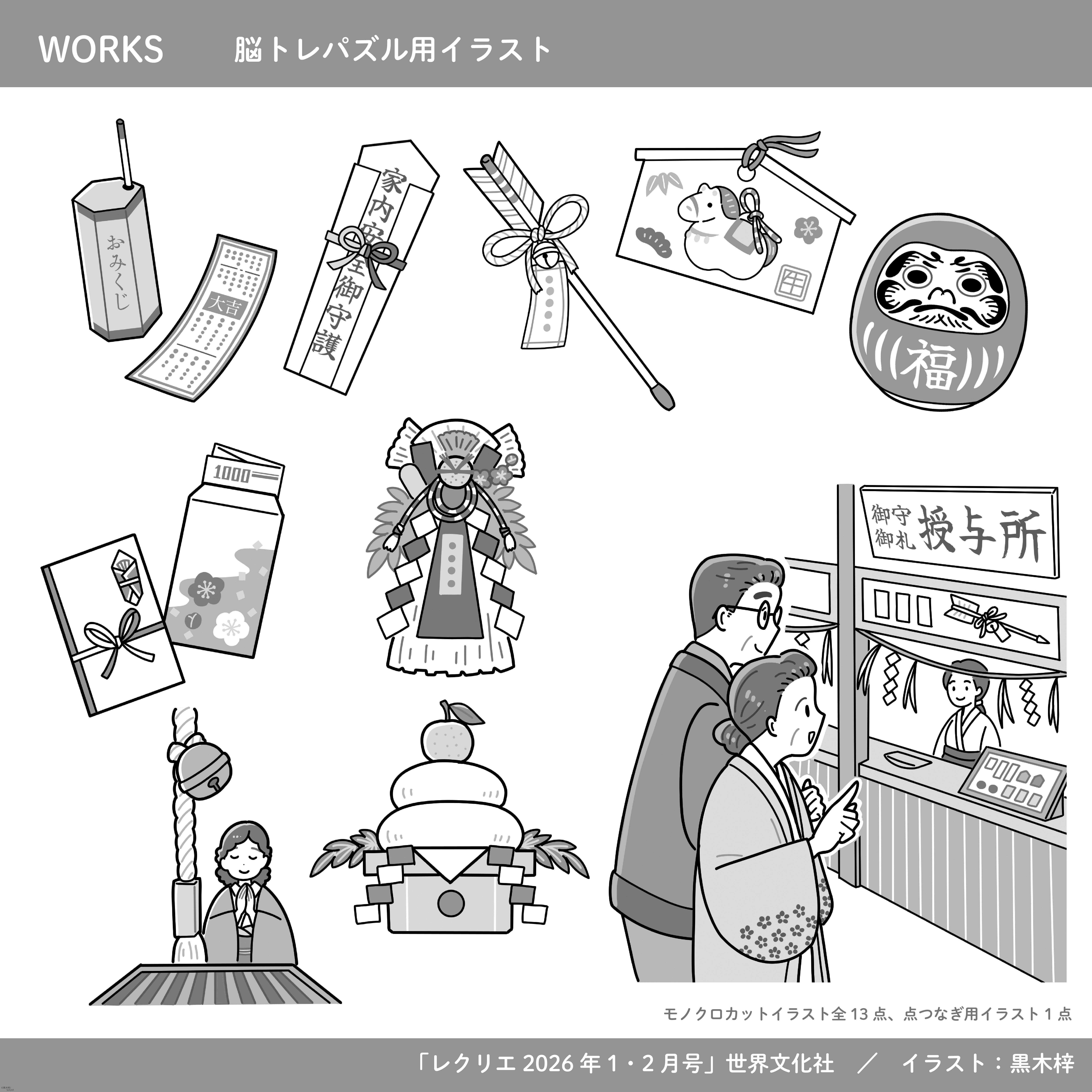 【経歴】 九州大学芸術工学部工業設計学科卒。 取扱説明書制作や博物館事務員に従事したのち、子育て中に趣味のイラストをストックイラストサイトへ投稿し始める。 ストックイラストから始まったご縁でクライアントワークを頂くことが増え、2024年1月にフリーランスとして起業。 【イラストについて】 主婦の視点ならではの、素朴で日常生活に即した、シンプルで温かみのあるイラストが持ち味です。 現在脳トレパズルのイラストをご依頼頂くことが多く、丁寧で正確な描写がご好評いただいております。 また、illsutrator等のデザインソフトウェアにも精通しており、オリジナルイラストと組み併せたカードやWEBバナー等のデザインにも実績がございます。 【実績】敬称略 🔳書籍 ・「レクリエブックス らくらくパズル 漢字編 絵解きパズル付き」(世界文化社)挿絵 ・「高齢者向けレクリエーション情報誌 レクリエ」(世界文化社) 2023年7・8月号~2025年7・8月号 脳トレパズル内挿絵 及び 付録 敬老の日カードのデザイン ・「へるぱる」2024年3・4月号(世界文化社)挿絵 🔳WEB ・占い、コスメ、求人等のWEBバナー広告のデザイン制作実績60件超 ・個人依頼 似顔絵アイコン 🔳ストックイラスト AdobeStock, PIXTA等の有償ストックイラストサイトで総ダウンロード数1000件突破