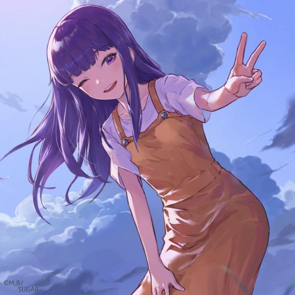 skebで制作したイラストです。 キャラクターの魅力が最大限引き立つように、特にアングル、キャラクターのポージング、ライティングにこだわりました。 また、背景に雄大な入道雲を描写することで画面に開放感や躍動感などの抜け感を出しました。(画像はトリミングしたもの)