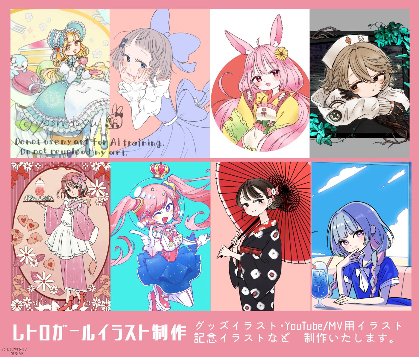少し個性的でレトロチックな優しいタッチのガールズイラストです。 ◎ 制作実績 ◎ ・群馬県伊勢崎 和菓子ストリート イベント用広報キャラクターデザイン制作 ・合同出版さまの書籍「おしえてジェンダー! 「女の子だから」のない世界へ」 装丁イラスト、キャラクターデザイン、挿絵、漫画制作 ・YouTube 歌ってみた/MV用イラスト制作 ・Vtuberさま グッズ/ノベルティ用イラスト制作 ・YouTube アイコン/ヘッダー制作 ・配信用CDジャケットイラスト制作