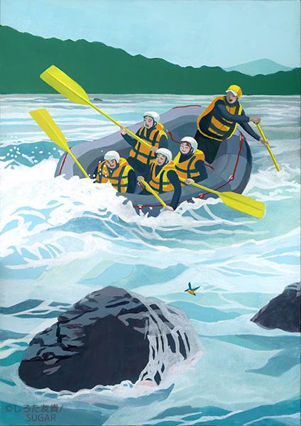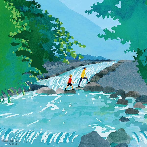 表紙やカレンダーを想定して描いた、夏の川の風景イラストです。