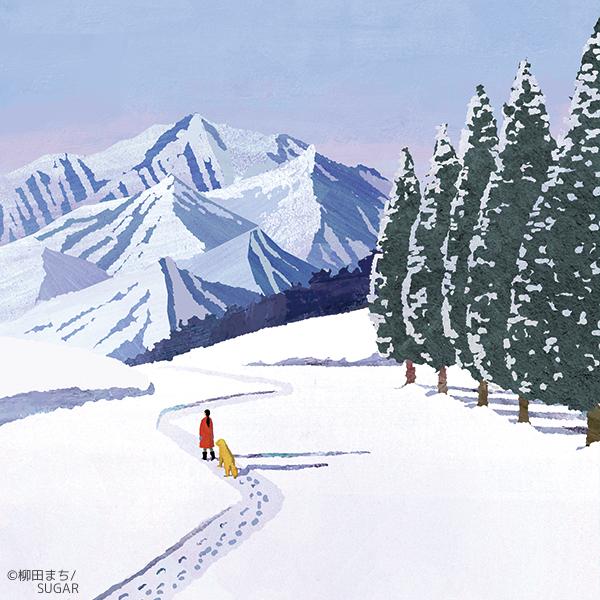 表紙やカレンダーを想定して描いた、冬の雪山の風景イラストです。