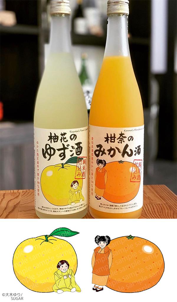 「リキュールラベル用イラスト」 以前お仕事をさせていただいた、 柴田酒造場さんからご依頼があり、 リキュールラベル用のイラスト制作を致しました。 地域限定用のリニューアル商品だそうです。 若社長ご夫婦のお子さま達、 かんなちゃんと、ゆずかちゃんがモデルです。 前回よりも成長した姿を描かせていただきました。 リキュールはどちらも甘さ控えめで、ご飯との相性も抜群です!