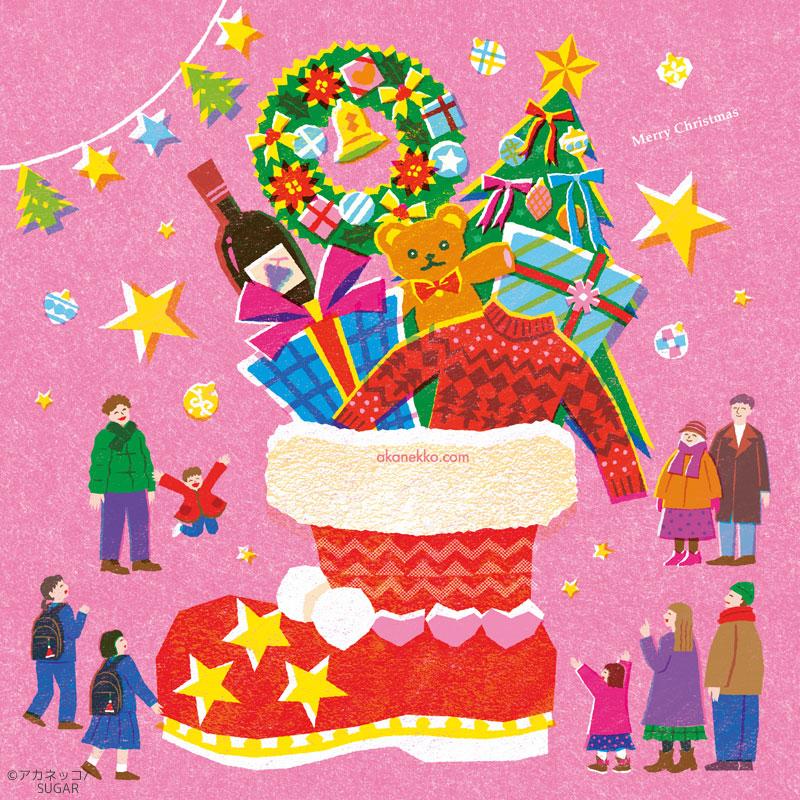 柔らかな主線なしタッチのサンプルイラストです。 「クリスマス」をイメージ。