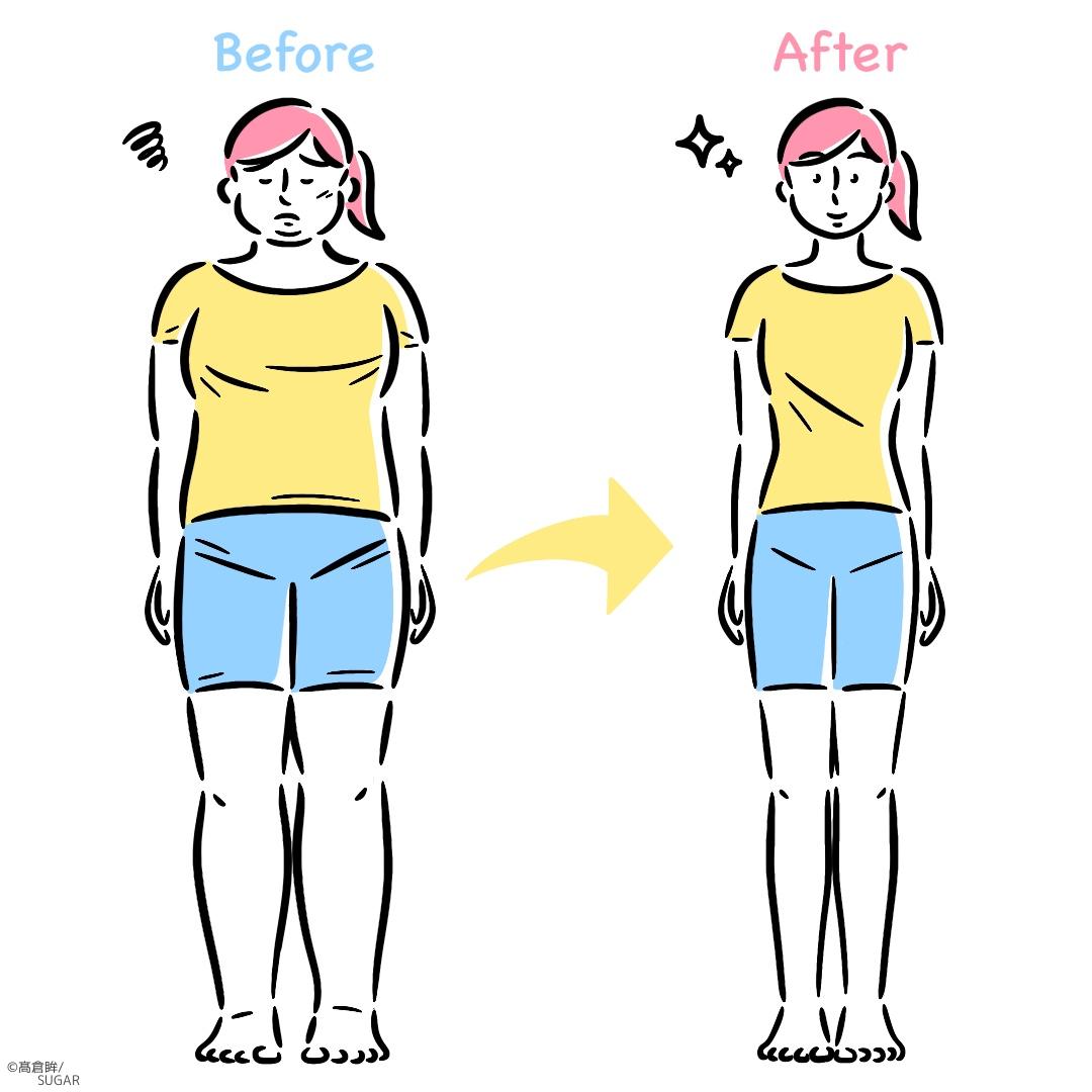 女性のダイエットによるビフォーアフターの全身イラストです。