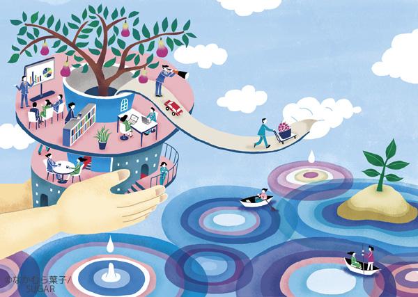 リクルートワークス研究所 「Works」表紙イラスト テーマ長寿就労社会について