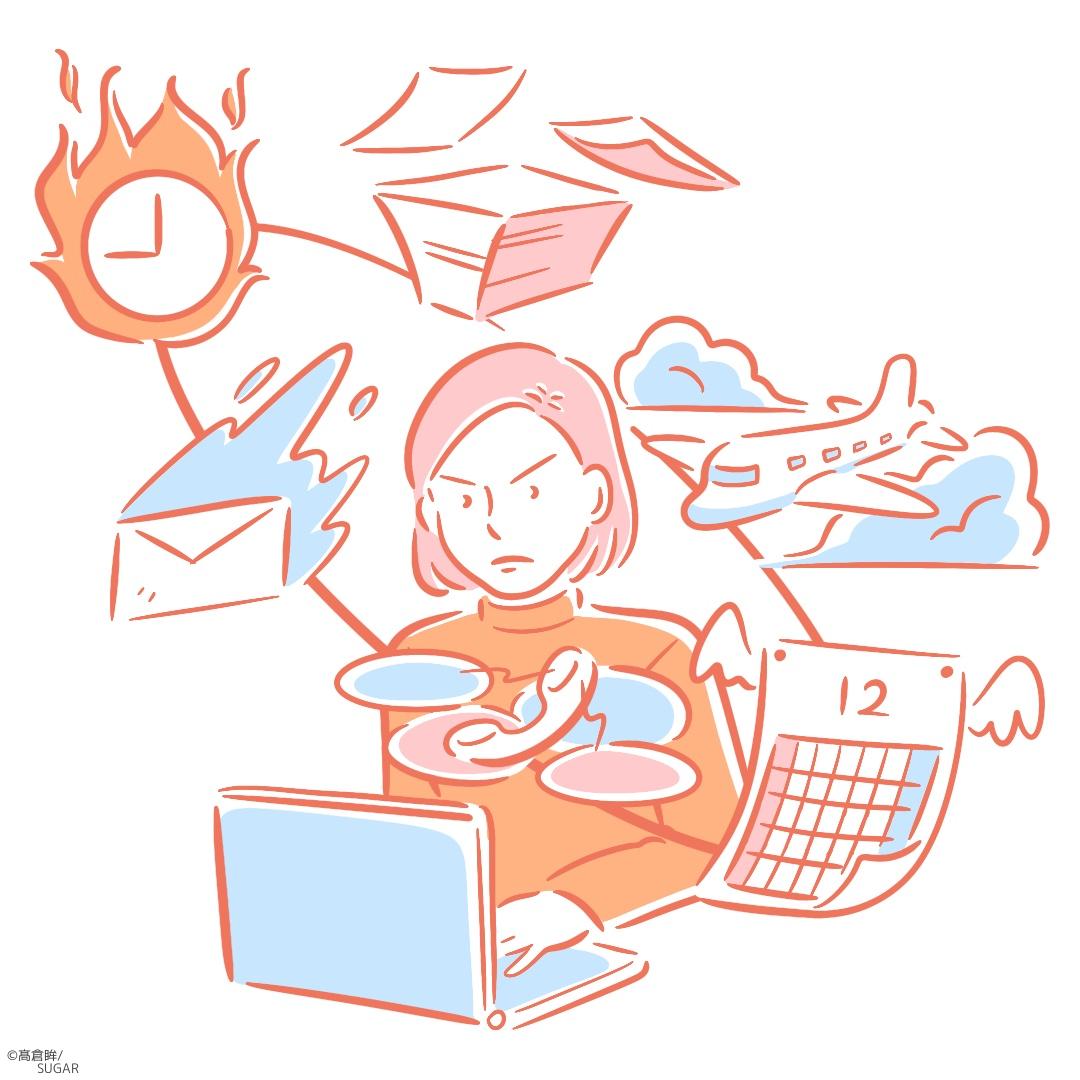 年末の仕事納めに向けてヒートアップしていく仕事や繁忙期をイメージしたイラストです。
