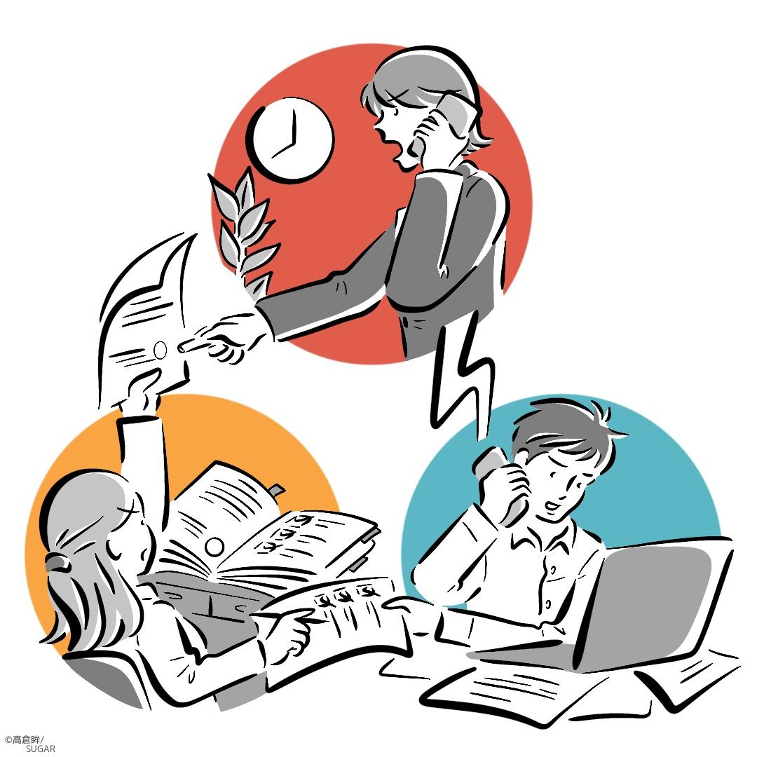 業務の流れを具体的に表したイラストです。 申請〜チェック〜承認の流れをイメージしました。