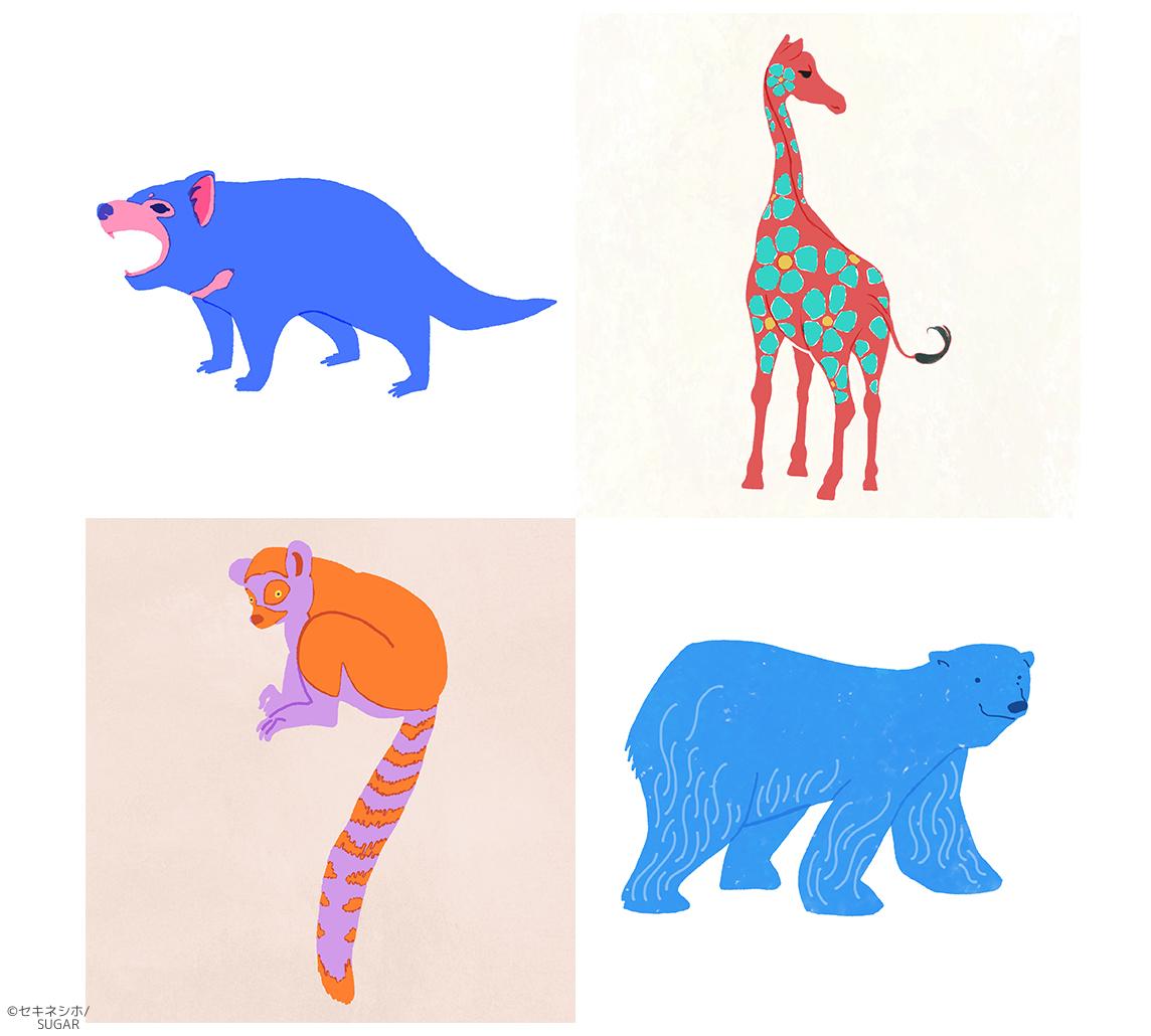 学習用の文具やテキストに添えられていると気分が上がるような、シンプルで可愛い生き物たちをコンセプトに制作しました。お子様にも見やすくするため、コントラストを高め、余白も多めに確保し、また親しみやすいキャラクターを単純で明確な形にすることで、視認性を高めています。