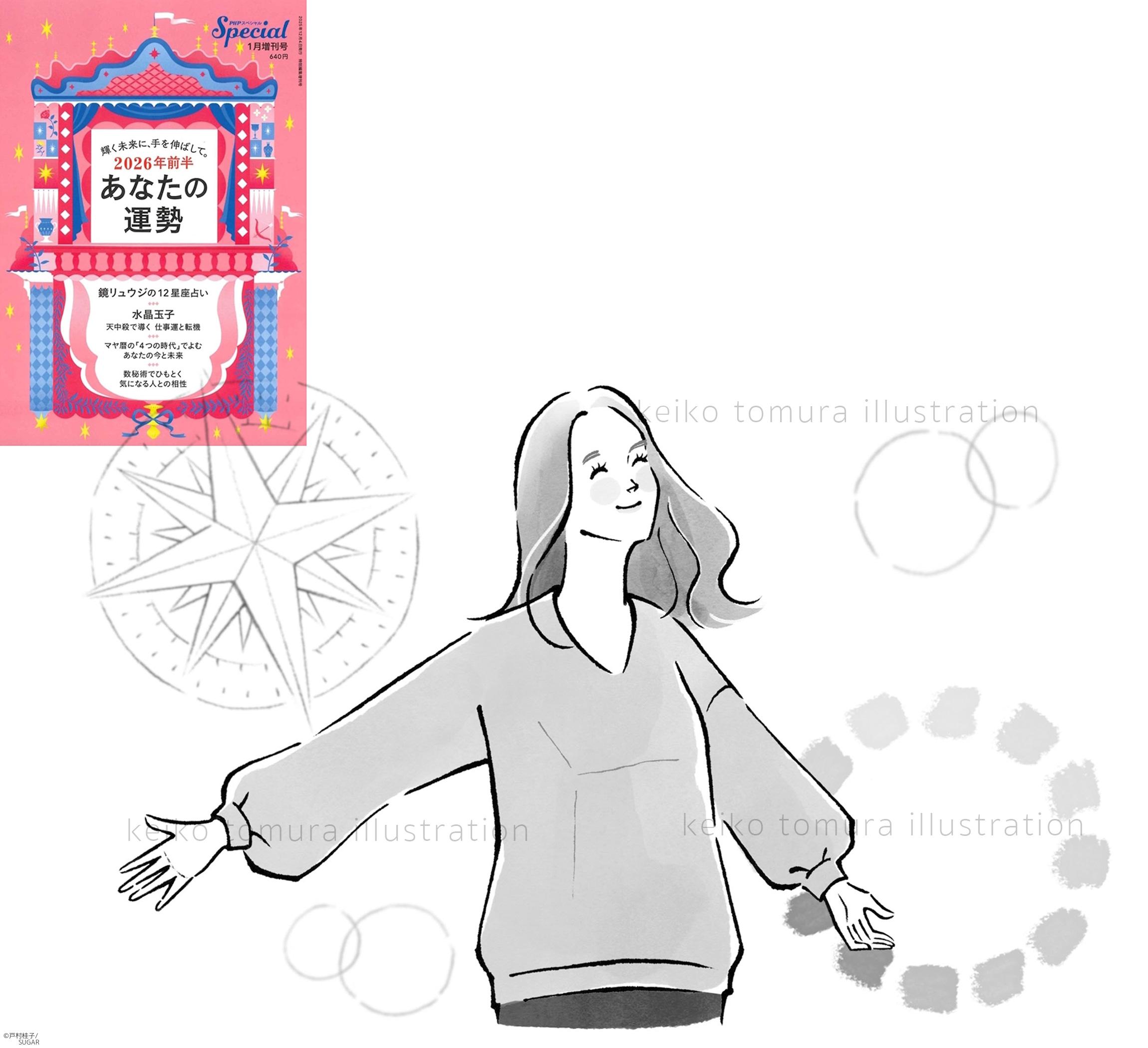 10月15日発売の「2026年 あなたの占い」(ブティック社)の宿曜占星術の特集にイラストを描かせていただきました。