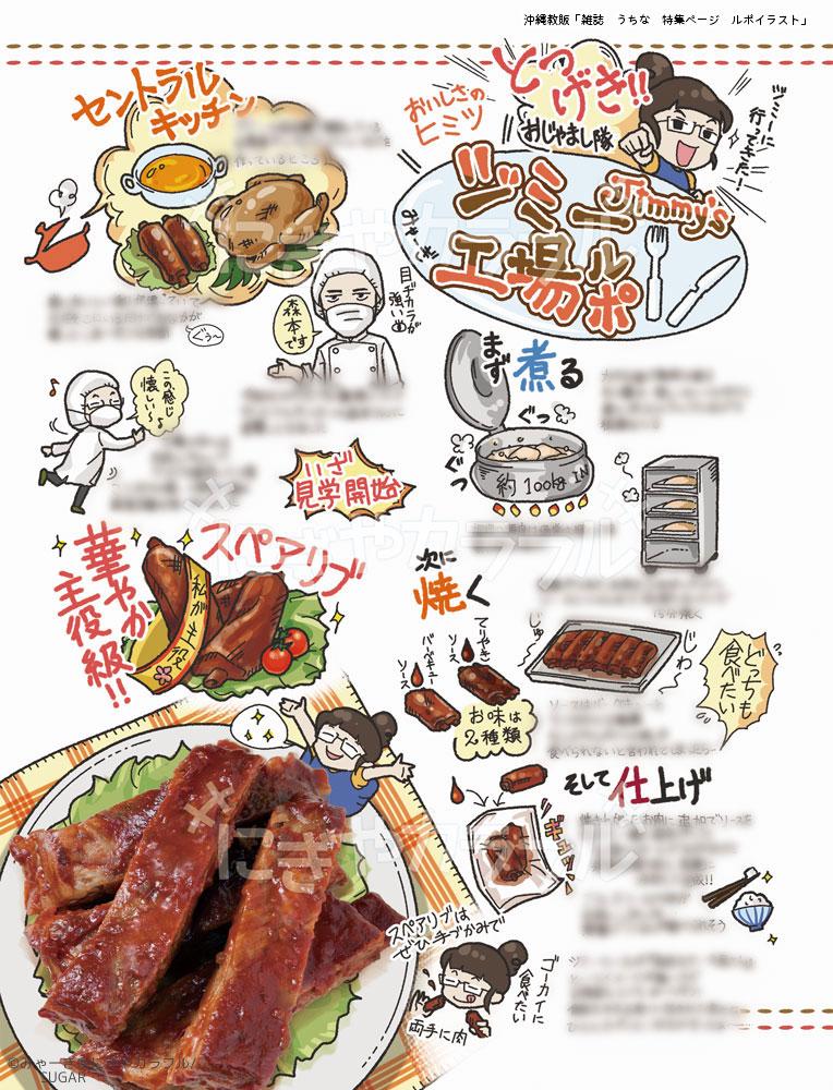 雑誌の特集ページのルポイラストです。実際に企業へ訪問取材を行いました。