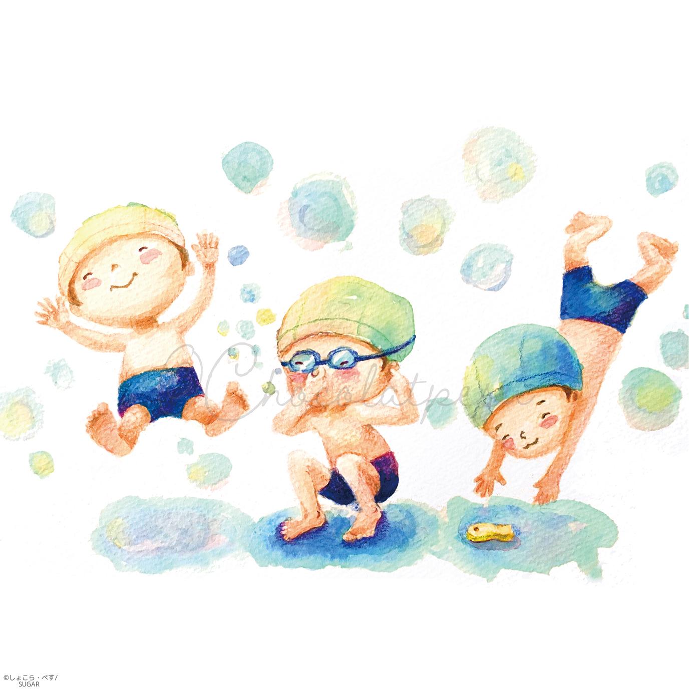 【Original】夏だーっ! 【アクリルガッシュ/色鉛筆】 ざっぷ〜ん! ぶくぶく。 ひゃっほ〜い! #絵本 #子供 #夏休み #カレンダー #季節 #海 #男の子 #少年 #水着 #こども