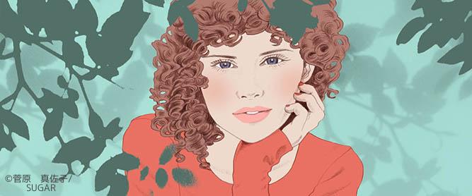 2人の女性が笑い合う様子を、柔らかなタッチと色づかいで表現しました。