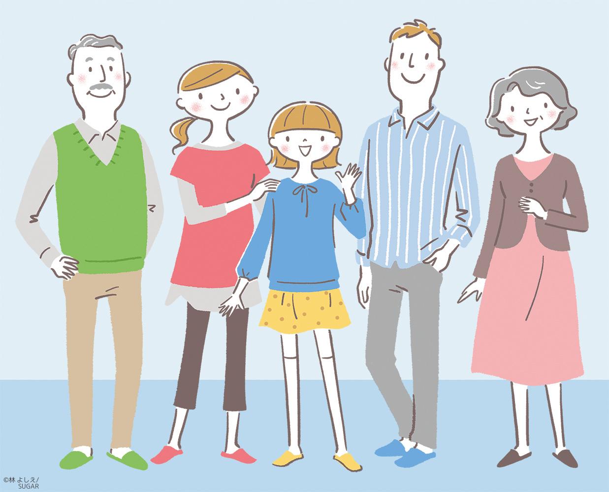 【三井林業ホームテック DM用カット】 マイホームでくつろぐファミリーのイラストを制作しました。 広告 広報 パンフレット リーフレット カタログ チラシ ちらし 冊子 健康 人物 男女 親子 夫婦 家族 家庭 ファミリー 生活 暮らし リビング 部屋 社会 線画 パステル ポップ ほのぼの リラックス 優しい やさしい 柔らかい やわらかい