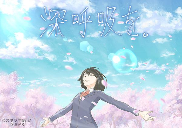 学生向け広告・教材の装画などを想定 「空の下で深呼吸を(女子学生)」