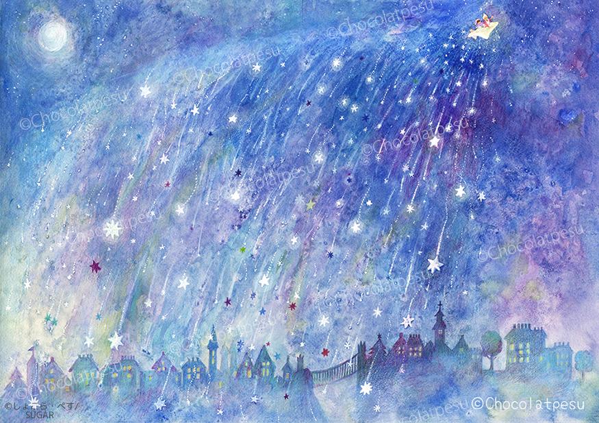 【Original】絵本『まっくらよるのほしづくり』 【アクリルガッシュ/色鉛筆】 空から星屑をまいてみたら......。 土屋鞄製造所×note「#土屋鞄の絵本コンテスト 」入賞作品。(挿画担当) #かわいい #挿絵 #絵本 #風景 #キャラクター #子供 #やさしい #ファンタジー #星空 #夜空