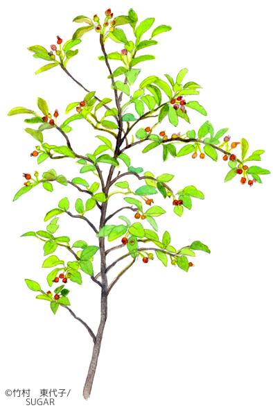 くもん出版 「樹木の名前大辞典」に掲載されているイラストの一部です。 それぞれ樹形、葉の形、花、実など特徴をわかりやすく描きました。