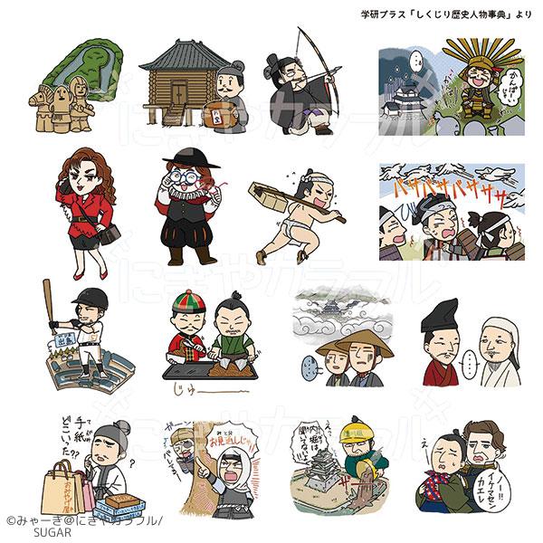 2017年11月発売「しくじり歴史人物事典(学研プラス/現・Gakken)」にてイラストを制作しました。こちらは本編に登場する歴史人物17名のイラストです。