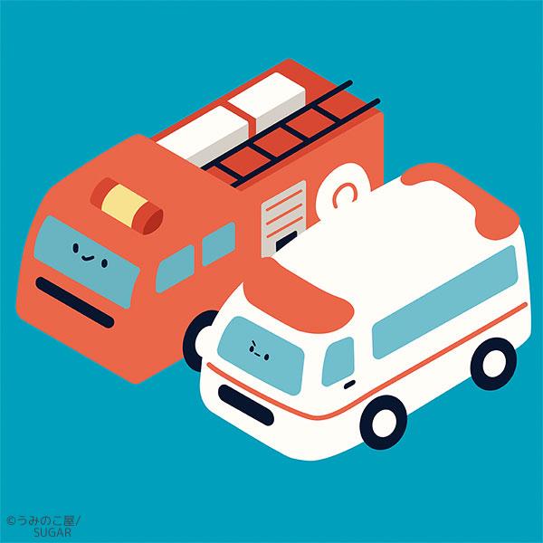 働く車を親しみやすいキャラクターとして描きました。