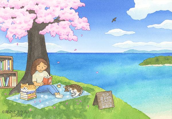「ブックカフェ」 A5サイズ 透明水彩、アクリル 2024年 バートックギャラリー「飾りたい本の絵展 」展示作品