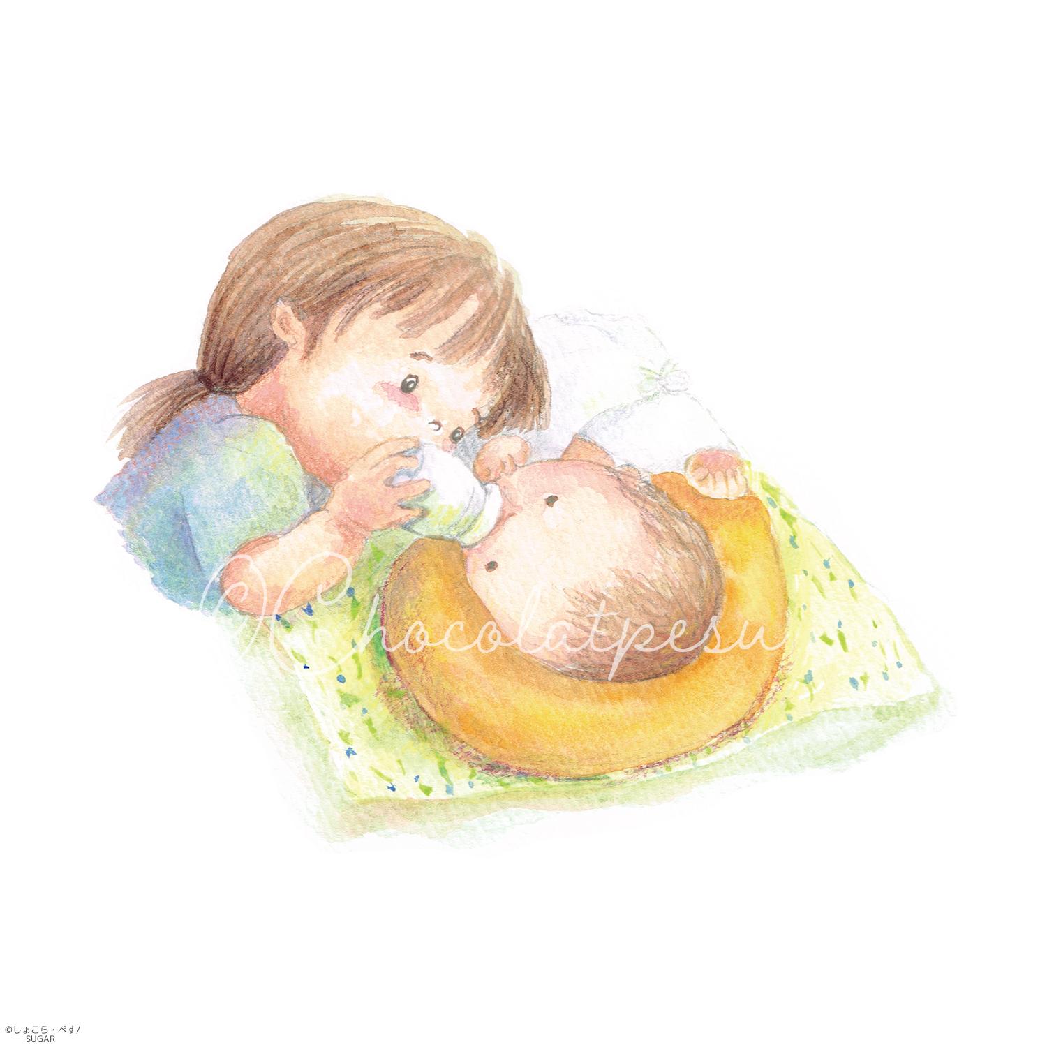 【Original】ミルク 【アクリルガッシュ/色鉛筆】 おなかすいてるってすぐにわかるのよ。だっておねえちゃんだもん。 #保育 #子供 #赤ちゃん #幼児 #育児 #保育園 #生活 #こども #子ども #