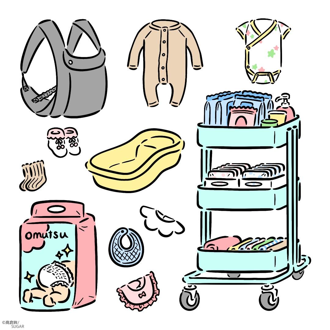 育児に必要なものをイメージしたカットイラストです。