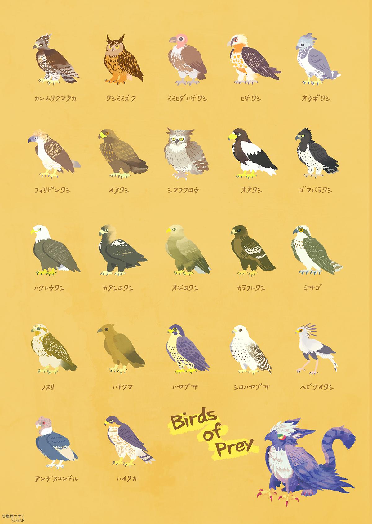 鳥をテーマにした個展用のイメージです オナガ、ヤマガラ、植物の実