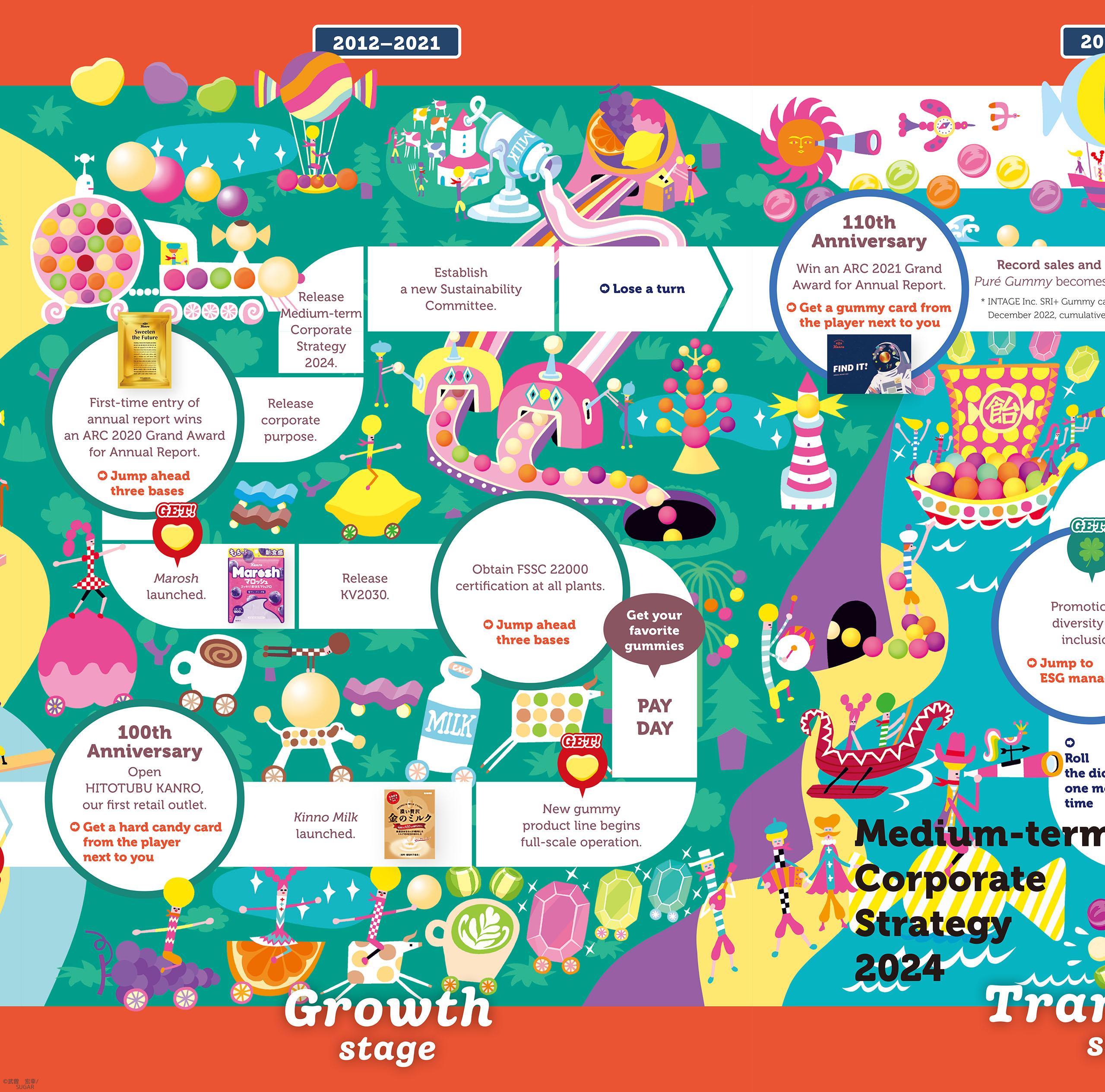 キャンディメーカーのカンロ株式会社 海外投資家向け アニュアルレポート2022 (2023年度 世界 ARCアワードの Illustrations(イラスト表現)部門でGoldを受賞)