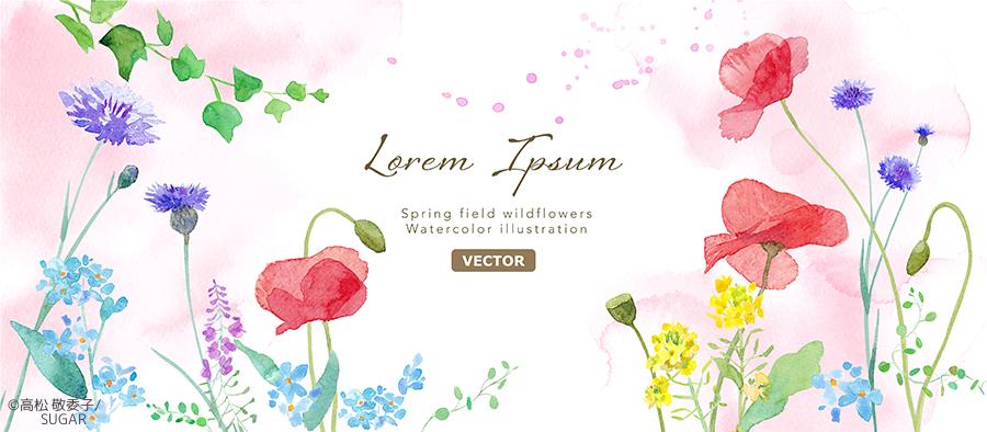 春のイメージ背景 お花畑の水彩イラスト