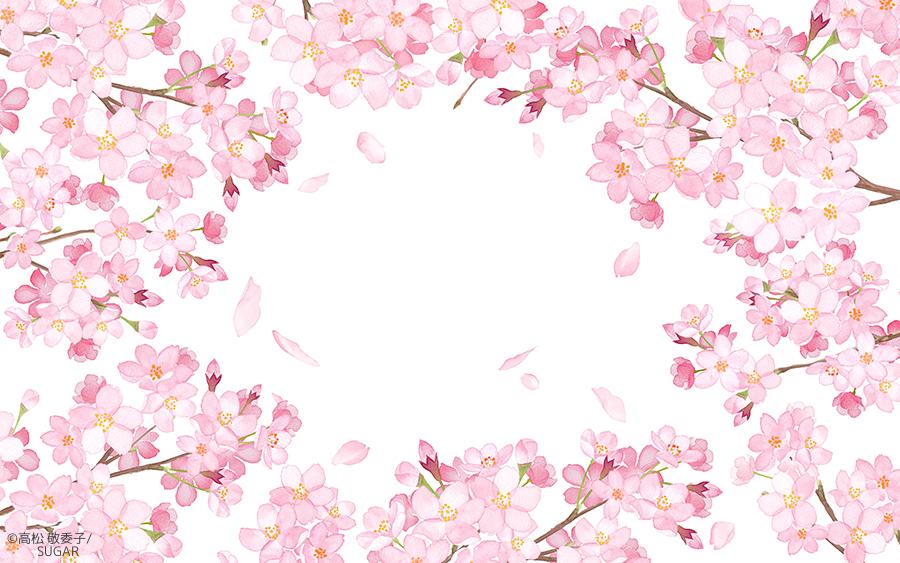 春のイメージバナー背景に 桜の装飾フレーム水彩イラスト