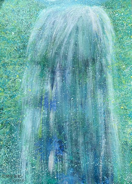 養命酒だより 夏号の表紙イラストです。 清涼感がキーワードでしたので滝を何個も描いてみて清涼感をだしました。