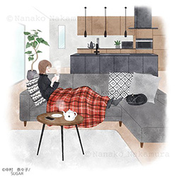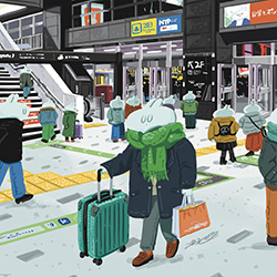 【節分】 季節行事「節分」を題材に、豆まきを楽しむくまたちをポップで親しみやすく描きました。 情報量を抑え、余白を活かした構成にすることで、視認性と可愛らしさを両立しています。