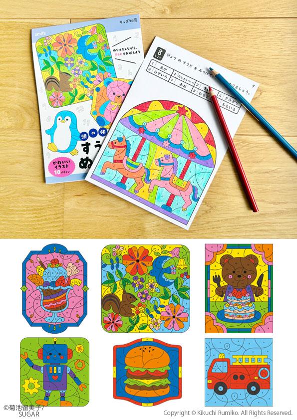 すうじぬりえのイラストを担当しました! 塗り絵をしながら数字を覚える知育塗り絵です。 100円ショップで販売されます。 (クライアント:株式会社アミファ)