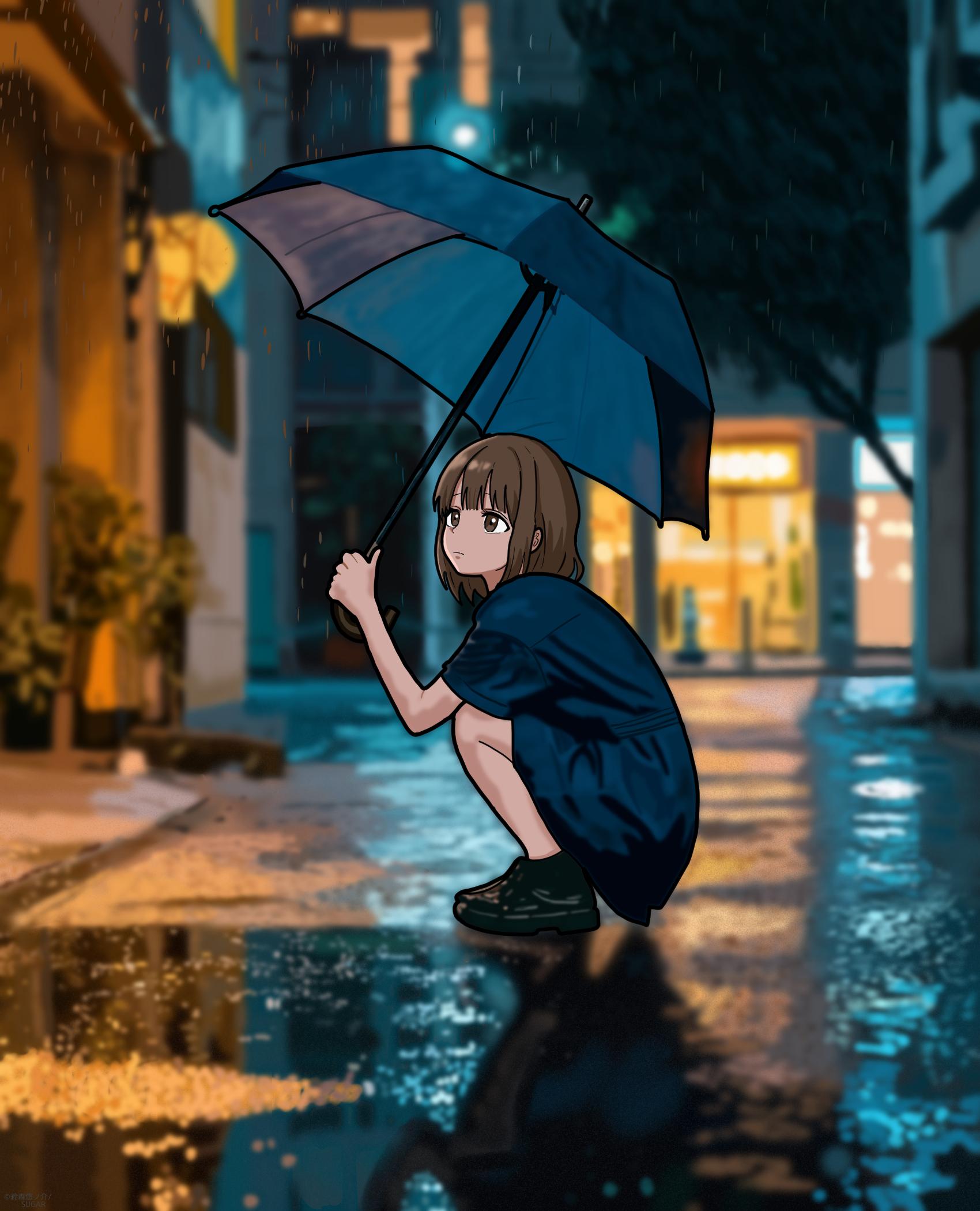 「物語の体温を可視化する」をテーマに、実写的なライティングとアニメタッチを融合させた情景描写です。濡れた路面への光の反射や、空気中の湿度を感じさせる緻密な厚塗りの背景に対し、太めの線画でキャラクターを際立たせることで、静止画ながら映像的な没入感を追求。広告ビジュアルやMVのコンセプトアートに最適です。
