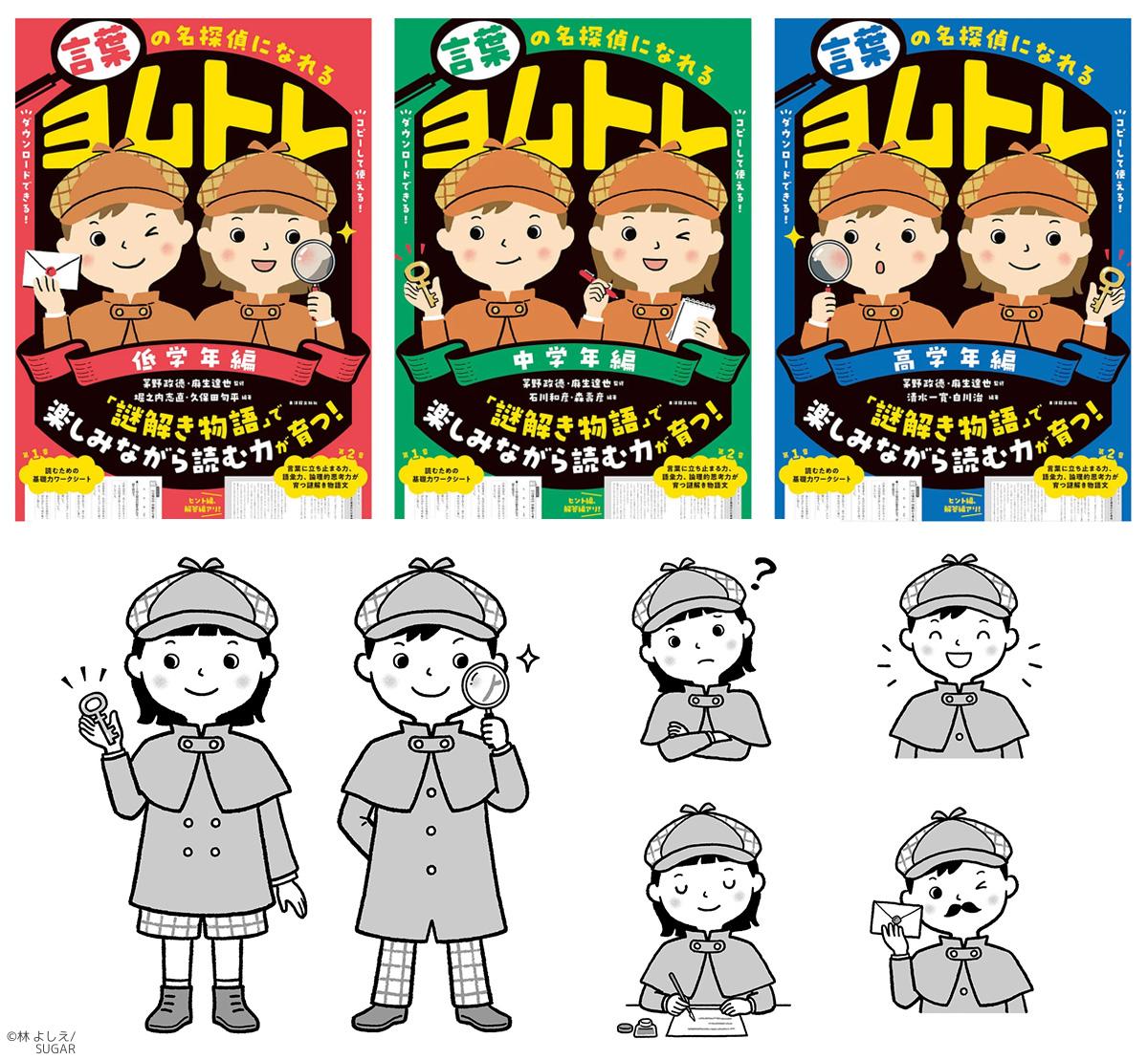 「言葉の名探偵になれる ヨムトレ」 東洋館出版社 小学生向け国語教材のメインキャラクターイラスト(装画・本文)を担当しました。 ブックデザイン/喜來詩織(エントツ)