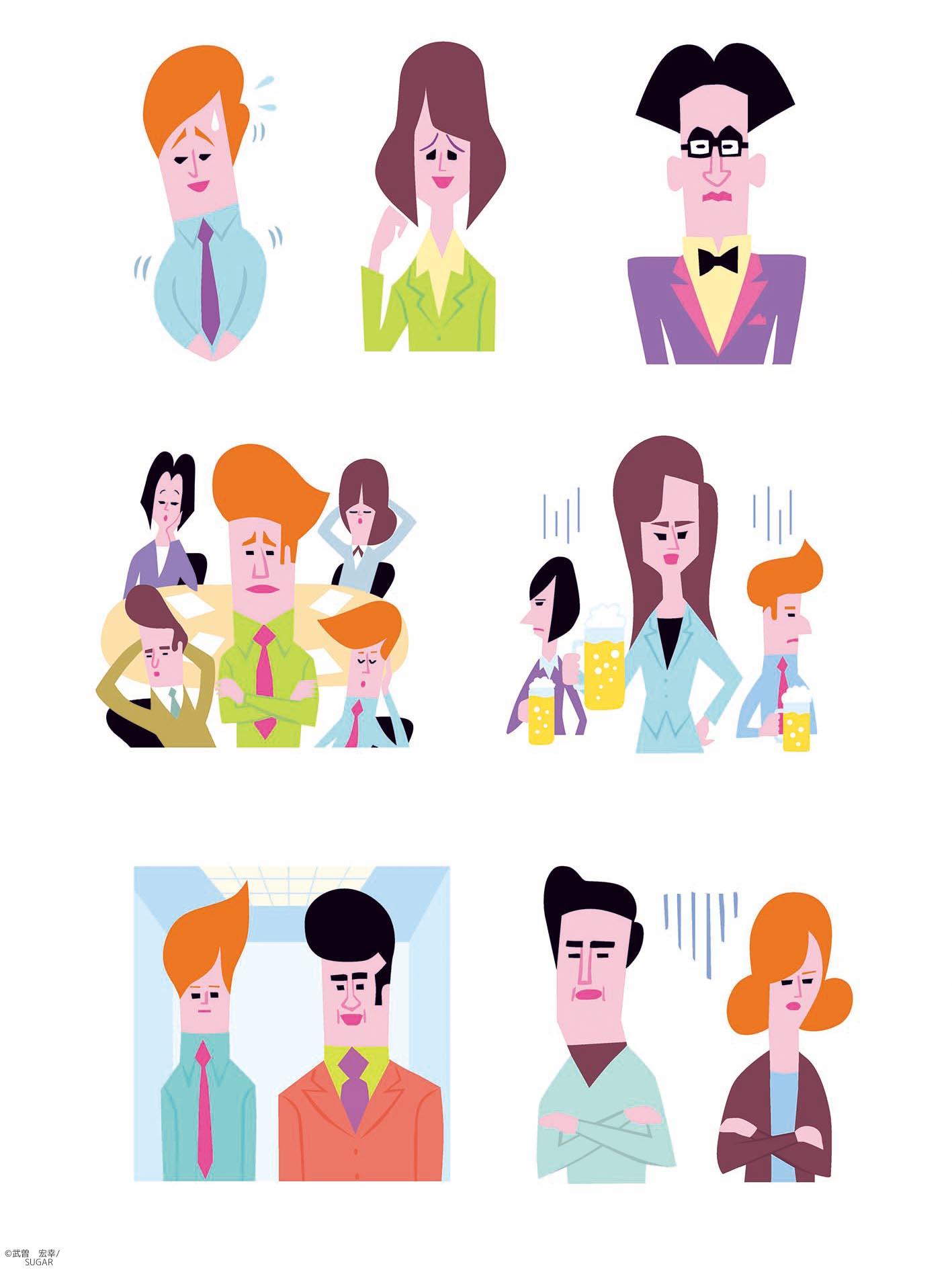 武曽 宏幸 (ムソウ ヒロユキ) イラストレーター 1964年生まれ 川崎市在住 1982年 大阪デザイナー学院 入学 1984年 コバオリ株式会社 デザイン部 入社 1989年 イラストレーションファイル誌 第54回チョイス入選(長新太さん選) 1990年 フリーのイラストレーターとなる 現在までリクルート、ベネッセ 、日経BP、サイゼリア など雑誌広告で多数