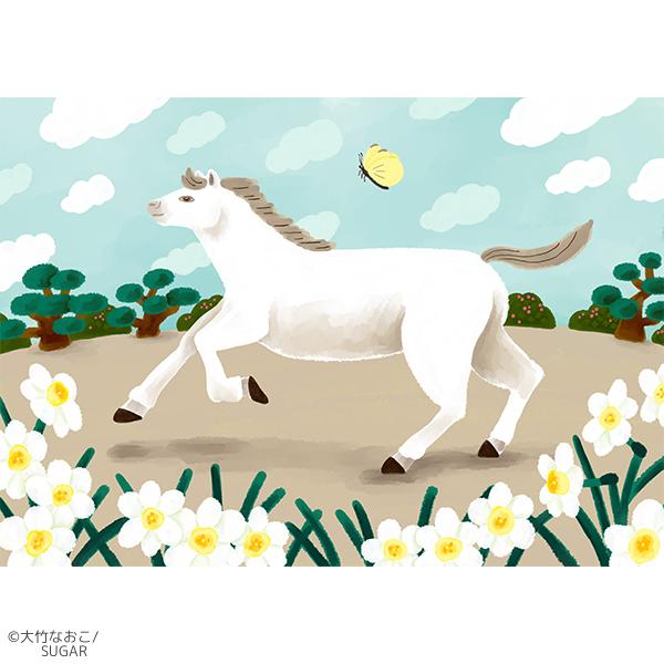 「馬」2026年、午年(うまどし)の絵です。干支の動物が魅力的に見え、新年の清々しさを感じてもらえるように制作しています。