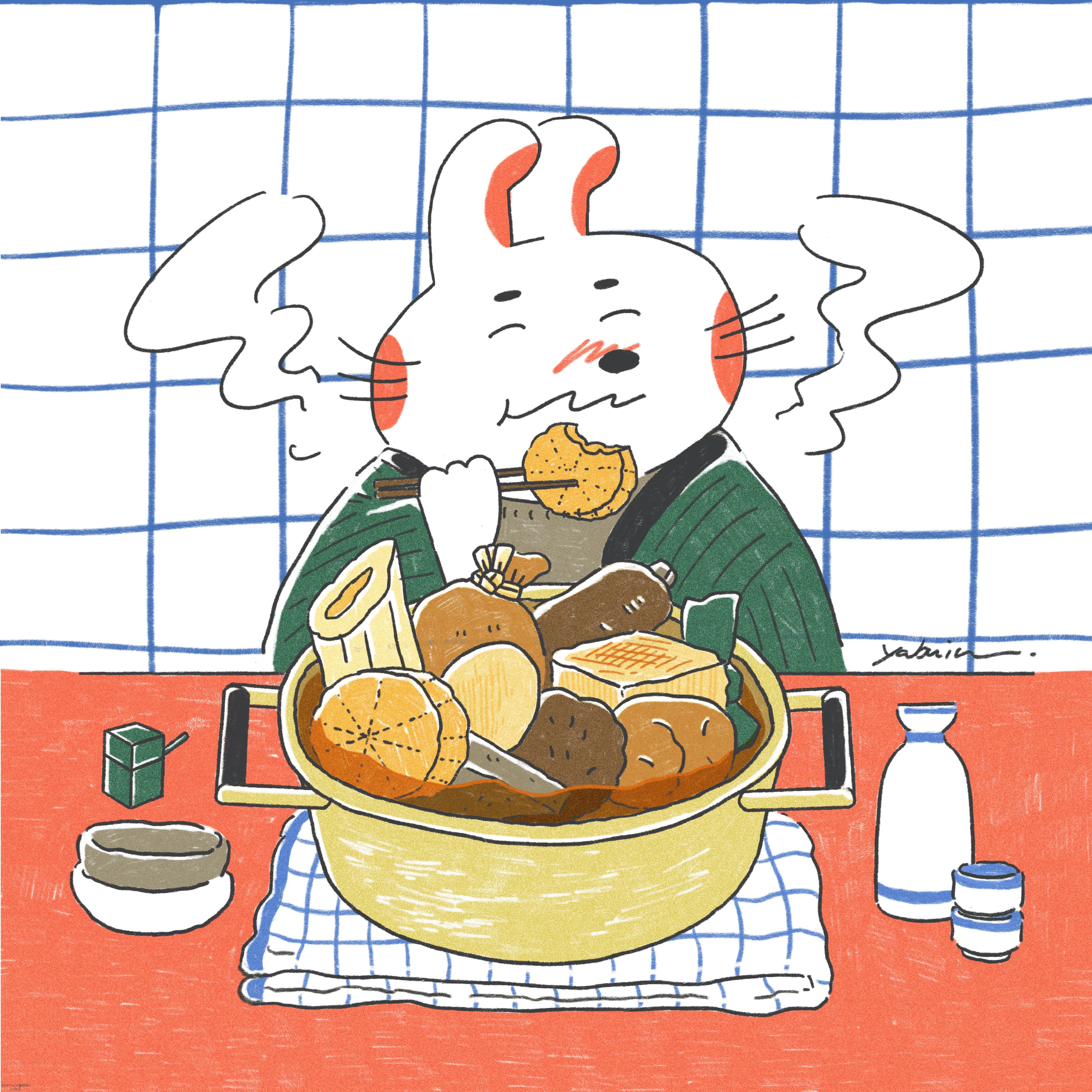 おでんを食べているウサギのイラストです。 使用ソフト:procreate、AdobePhotoshop