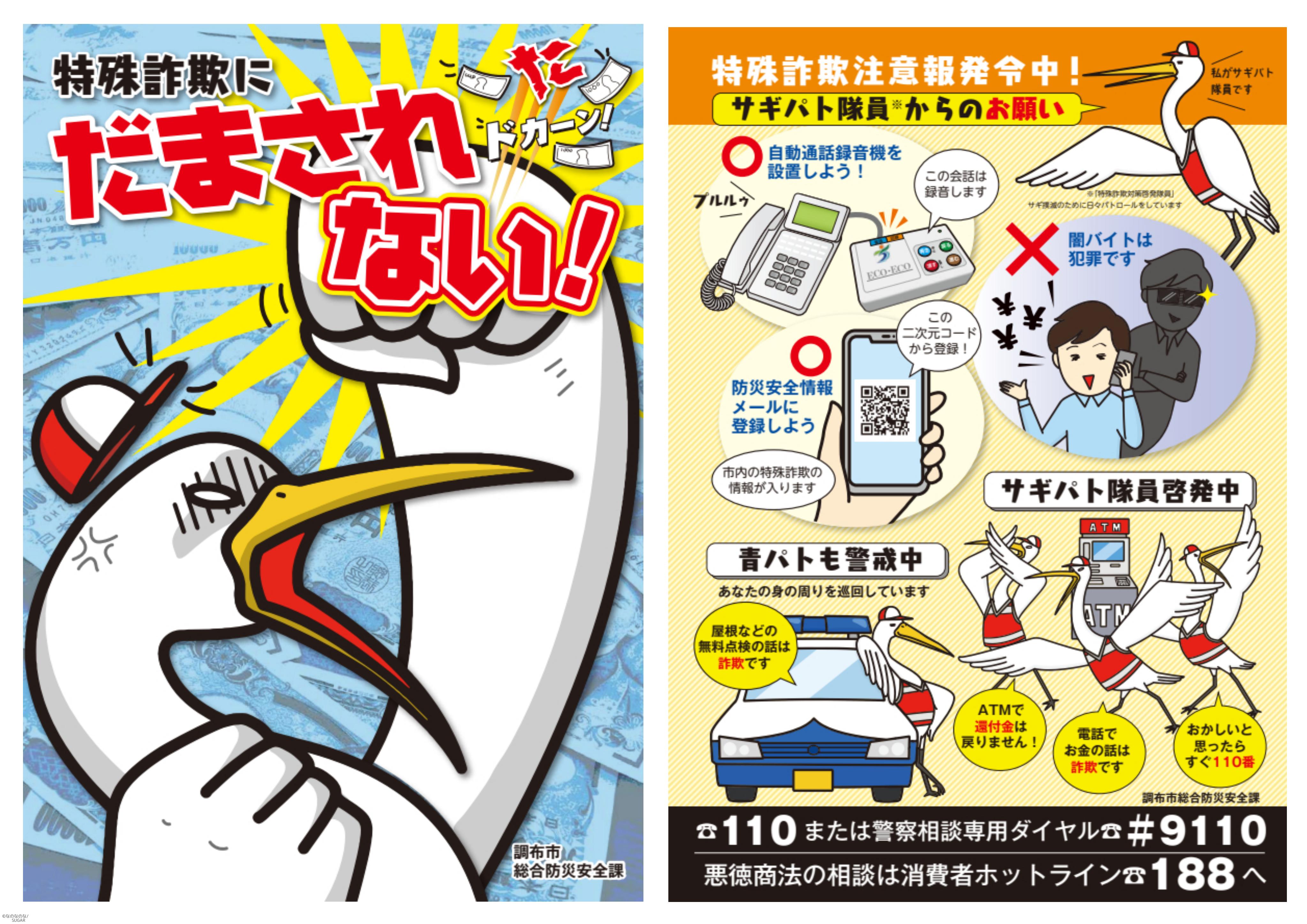 調布市総合防災安全課 「特殊詐欺注意喚起」リーフレット イラストを担当させていただきました