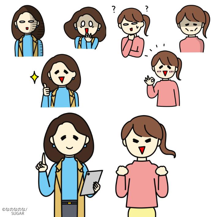 美容成分などを擬人化、ゆるいキャラクターにして親しみやすくわかりやすいものにします。