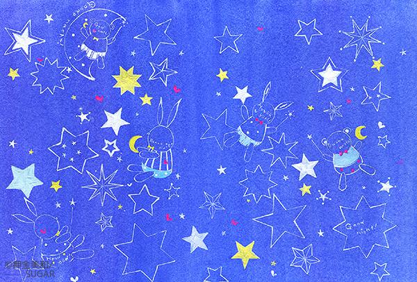 眠りの本 の表紙イラスト 表1−4にまたがるデザインです。 一枚絵で制作しました。夜の快適なイメージです。