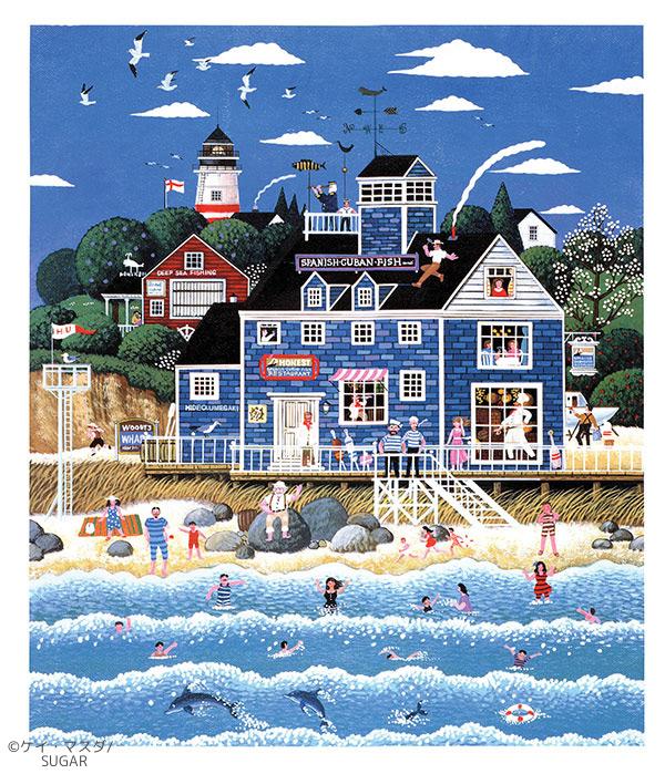 ⚫︎大修館書店英語の教科書3年生用にて使用されました。 テーマはクロスロードと海の街 様々な人種や性別の沢山の人が海の街に住んで 行き交っている様子です。