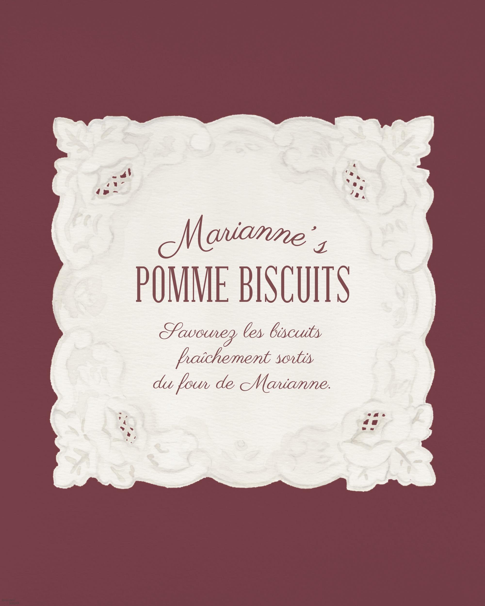 アンティークのリネンハンカチを描きました。 "マリアンヌのリンゴクッキー屋さん"の架空のブランドロゴをあしらって…🪡